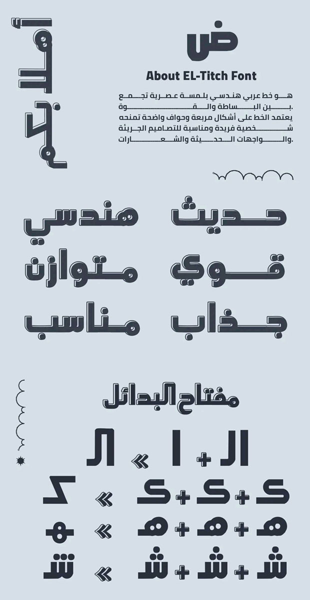 خط التتش الهندسي للعنونة وتصميم الشعارات .. يناسب المشاريع اللي محتاجة حضور قوي، وإطلالة حديثة، وهوية صريحة بتفرض نفسها من أول نظرة، مثالي للشعارات القوية، العناوين الحادة، الواجهات الحديثة، والتصميمات اللي محتاجة خط يترك أثر واضح.